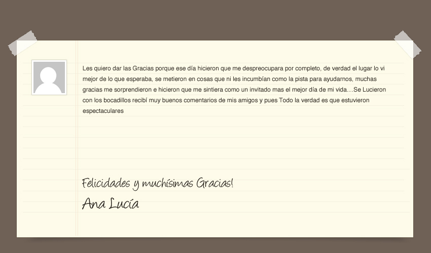 Que cada evento nuevo supere al anterior, que la satisfacción del cliente se convierta en nuestra mejor publicidad y que como empresa nos recuerden por la celebración que nos permitieron compartir con ellos, convencidos de que hicieron la mejor elección con nosotros.